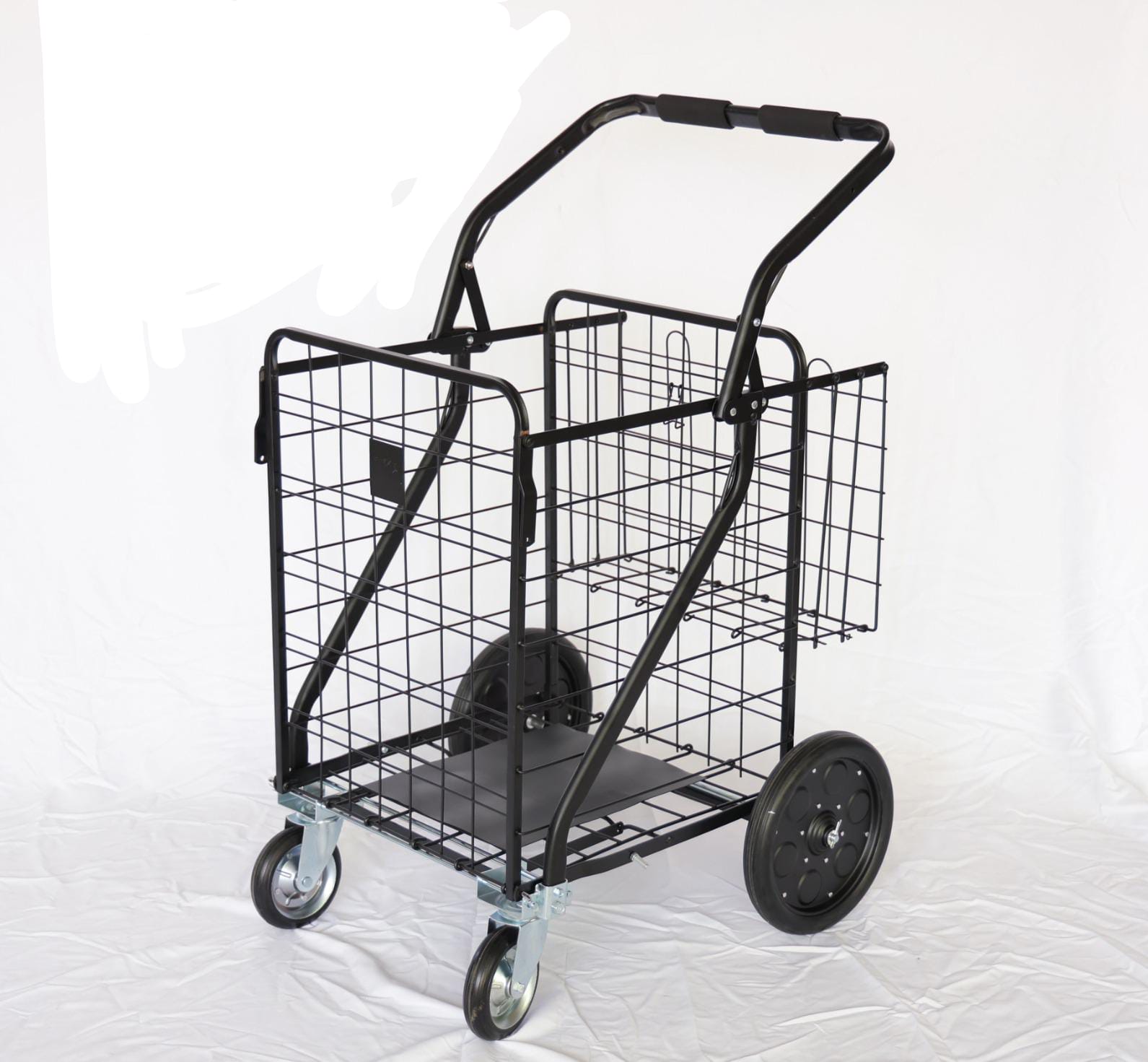 עגלת שוק סופר חזקה, מושלמת לעריכת קניות בסופר ליד הבית, בלי צורך להשתמש בשקיות, להעביר לרכב וכו'. ישר מהמדף למדף בבית… כושר משא עד 70 ק"ג עגלת שוק ענקית החזקה ביותר. מידות העגלה כאשר העגלה פתוחה: אורך 63 ס"מ, רוחב 51 ס"מ, גובה עם הידית 100 ס"מ. המחיר לעגלה לא כולל תיק. ניתן לרכוש תיק בנפרד. כשאתם יוצאים לקניות עם עגלת שוק, אתם מצפים לחזור הביתה כמה שיותר מהר, עם עגלת שוק ענקית ועמוסה בקניות, אך אינכם מאחלים לעצמכם שעגלת שוק העמוסה שלכם, תתפרק לכם פתאום באמצע הדרך. באמצעות עגלת שוק ענקית שהיא עגלת שוק חזקה ביותר, ועגלת קניות חזקה, תוכלו בשקט להוביל את הקניה לבית בלי להיתקע באמצע. בנוסף לזה עגלת קניות חזקה מגיעה עם תיק מתאים, לנוחות נשיאה מרבית, ונטרול פגיעה במוצרים. אז אנחנו מאחלים לכם קנייה נעימה עם עגלת שוק חזקה וחדשה משלכם. תתחדשו.